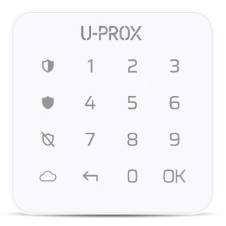 Бездротова міні-клавіатура для постановки і зняття з охорони, індикації тривог і стану пристрою і взаємодії з користувачем тривожної сигналізації. Колір: білий, чорний. Розмір: 84.5 х 84.5 х 14.6 мм