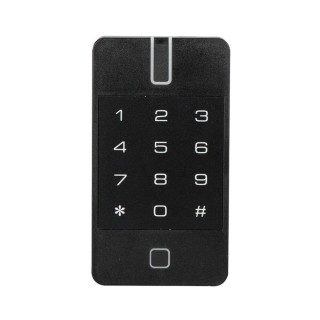 Тонкий водонепроникний Bluetooth RFID-зчитувач з клавіатурою. Процесор 8bit, підтримка карт Mifare (13.56MHz), протокол підключення: RS-485, Wiegand 34/26. Функції: тривога (Tamper Alarm); Дальність зчитування: 1-3см; вологостійкий IP55. DC 9-15В/200мА, 135х47.5х16 мм, 200г