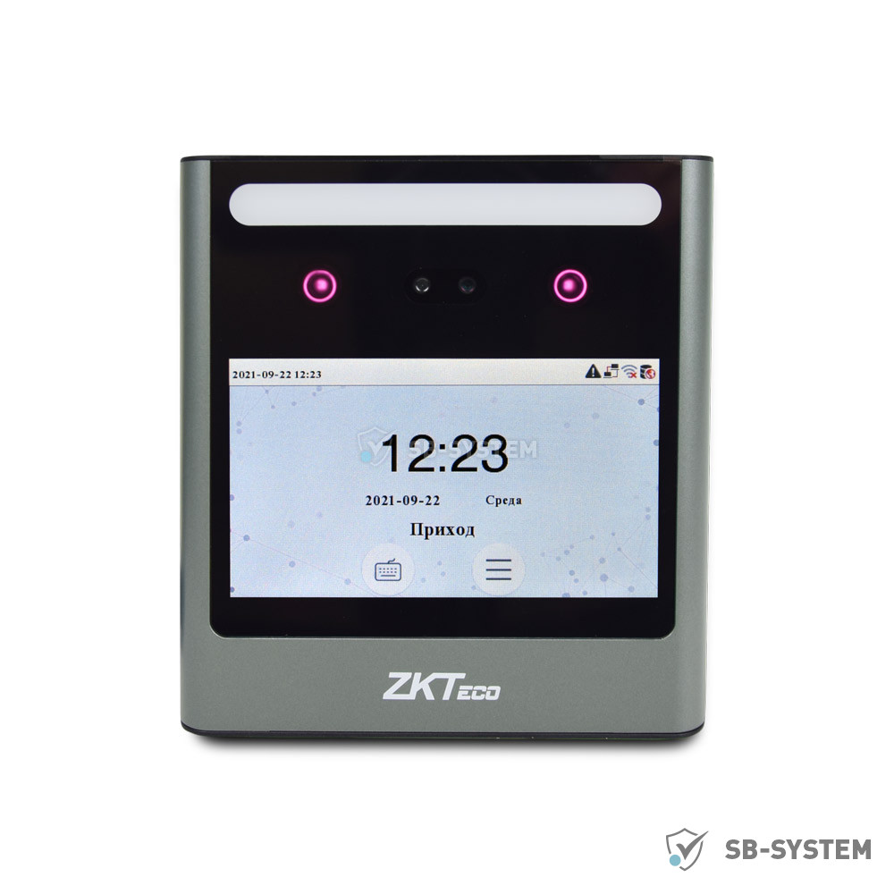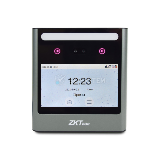 Термінал обліку робочого часу і контролю доступу з ідентифікацією по геометрії обличчя. Кількість шаблонів облич: 800. Кількість користувачів: 800. Кількість записів: 150000. Дисплей: TFT 2.8" сенсорний. Пам'ять: 512 МБ RAM / 512 МБ Flash