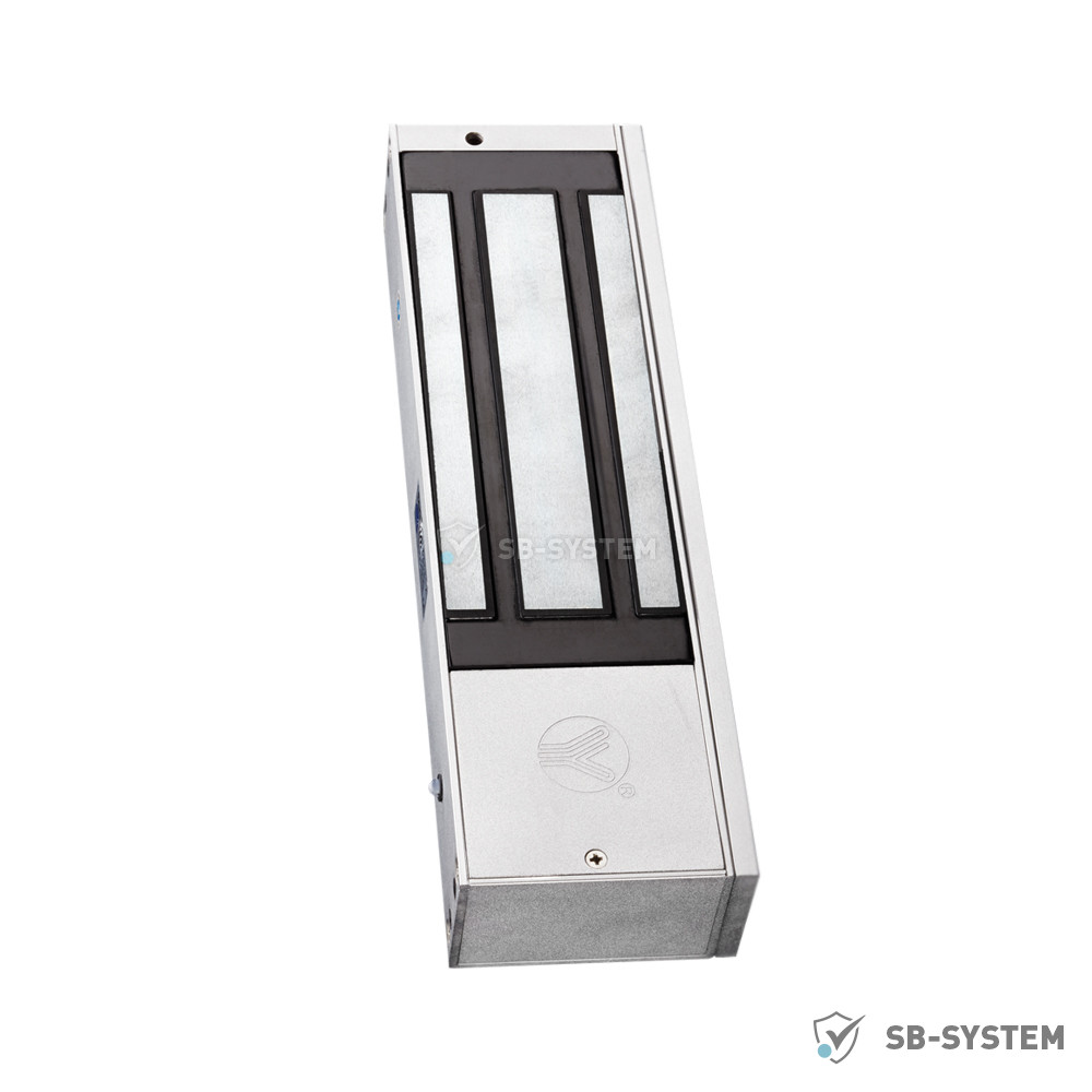 Електромагнітний замок, накладний, сила утримання 500 кг, живлення: DC12V / 500mA, DC24V / 250mA. Розміри: 265x73x41 мм. Підходить для дерев'яної, скляної, металевої та протипожежних дверей.