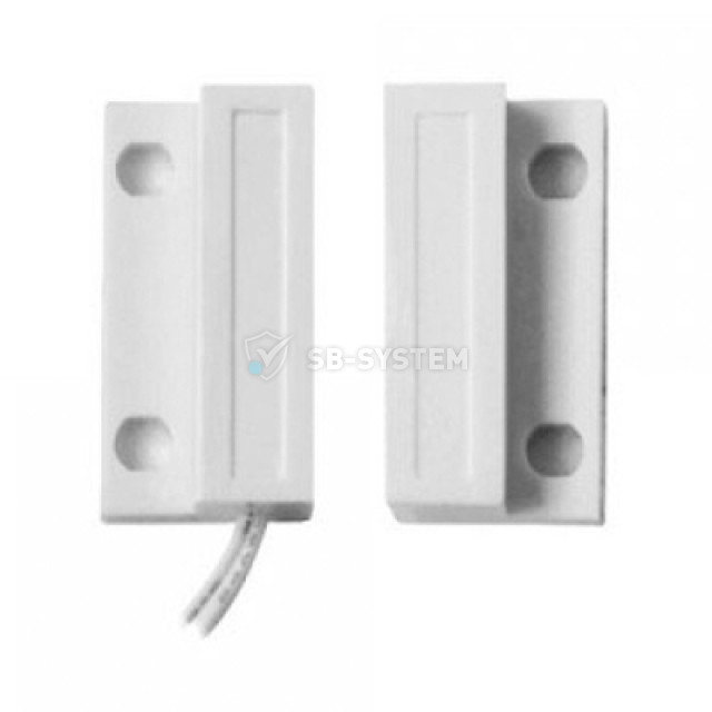 Датчик відкриття магнітогерконовий (геркон) на дерев'яні та пластикові поверхні, накладний тип встановлення, корпус пластиковий, черговий режим - 10мм, режим тривоги - 25мм. Колір: білий.