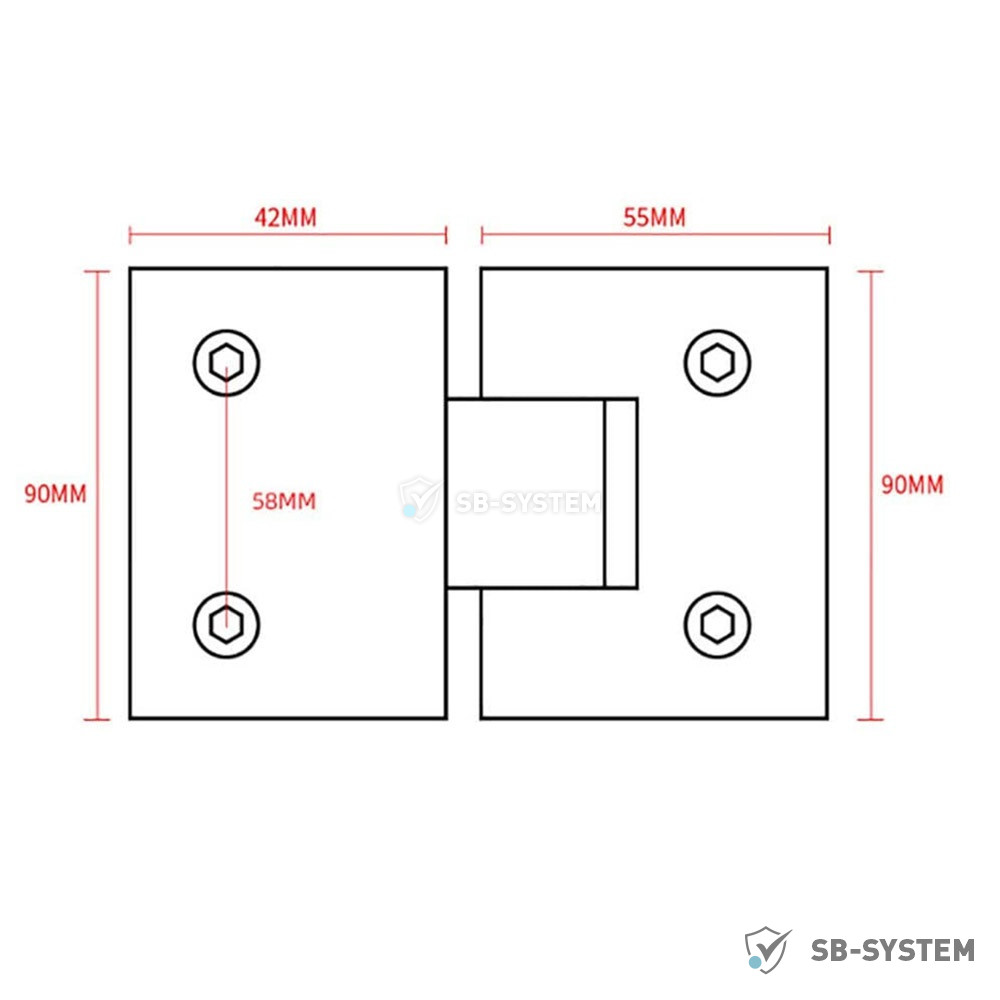 - Підходить для встановлення між безрамними скляними панелями завтовшки 8–12 мм