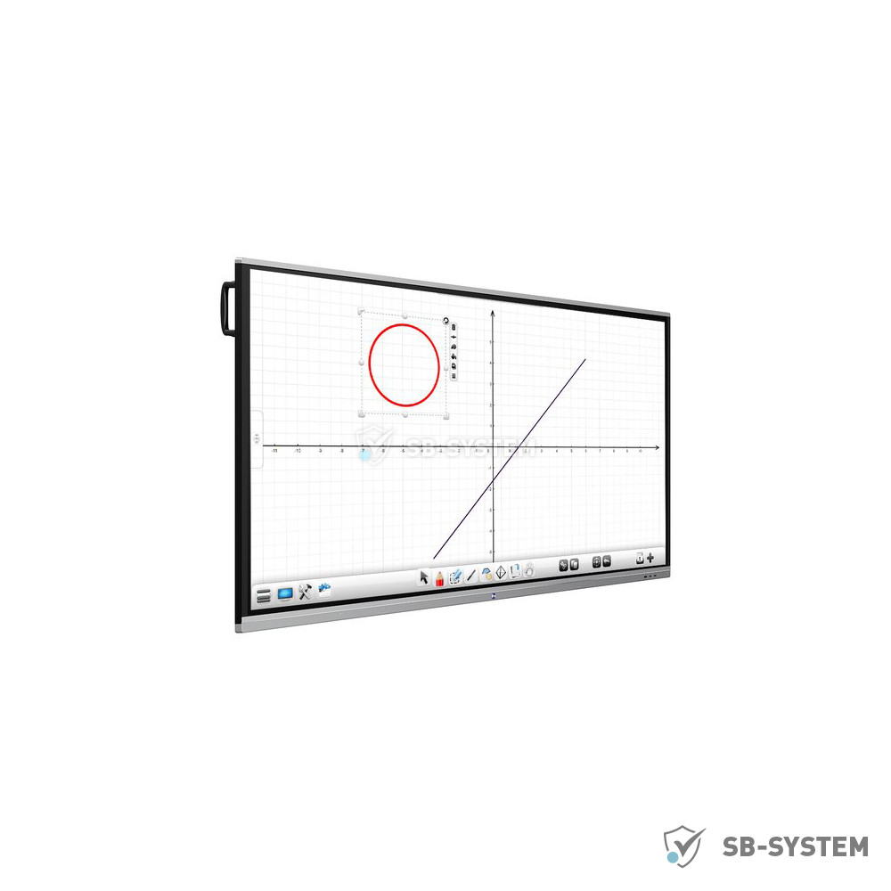 Інтерактивна панель з екраном 65 "(3840x2160 пікселів). Операційна система Microsoft Windows 10 Pro. Дисплей: LED Edge light. Живлення: AC 100-240 В. Розміри: 872 х 88 х 1493 мм.