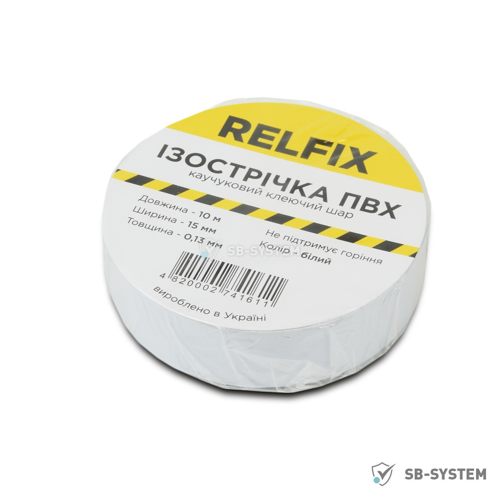 Ізострічка Relfix 15 мм х 10 м біла являє собою поливинилхлоридную основу з нанесеним клейовим шаром з синтетичного каучуку. Ізоляційна стрічка забезпечує високий механічний захист дротів від пошкоджень.Застосування