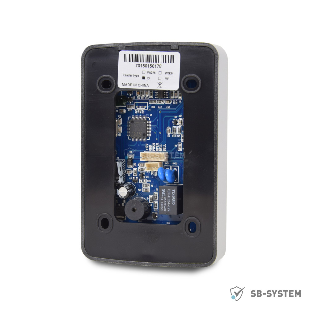 Кодова клавіатура, вбудований зчитувач EM-Marine, 2000 кодів і карт, пластиковий корпус, робоча напруга DC 9-15V, вихід реле, підключення кнопки виходу, дверного дзвінка, геркона. Розміри 103.5x86x19 мм