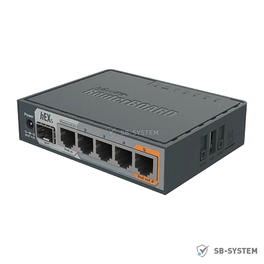 MikroTik hEX S (RB760iGS) маршрутизатор призначений для використання в мережах, де не потрібна підтримка бездротового зв'язку. Підходить для розміщення в офісах, будинках або інших місцях, де потрібна надійна і високошвидкісна дротова мережа. Інтерфейси: (5) 10/100/1000 Ethernet портів; (1) SFP; (1) USB type A; (1) MicroSD. Операційна система: RouterOS. Рівень ліцензії: 4. Джерело живлення: 24V, 1.2А адаптер, PoE in 802.3af/at. Роз'єм живлення: 2 (DC jack, PoE-IN). Підтримувані формати вхідної напруги: 12-57 V. Підтримка PoE: PoE in: 802.3af/at; PoE out: Ether5, Passive PoE. Максимальна загальна потужність PoE out: 500 mA. Максимальна споживана потужність: 6 W (без підключень), 24 W
