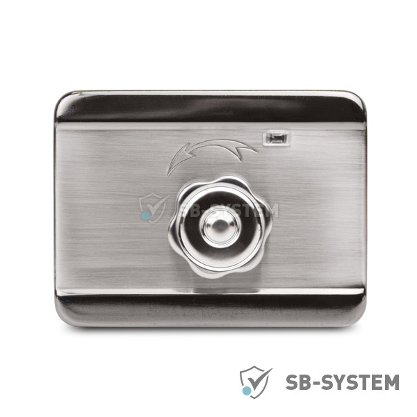 Моторизований замок, накладний, установка внутрішня, нержавіюча сталь, рукоятка відкриття на замку, тип ключа - перфорований, живлення 12В/1А. У комплекті 3 ключі