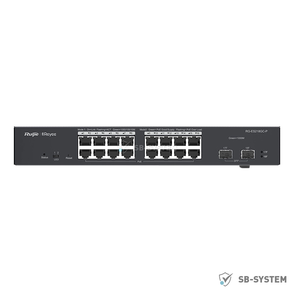 Опис товару poE-комутатор Ruijie Reyee RG-ES218GC-P 18-портовий гігабітний інтелектуальний