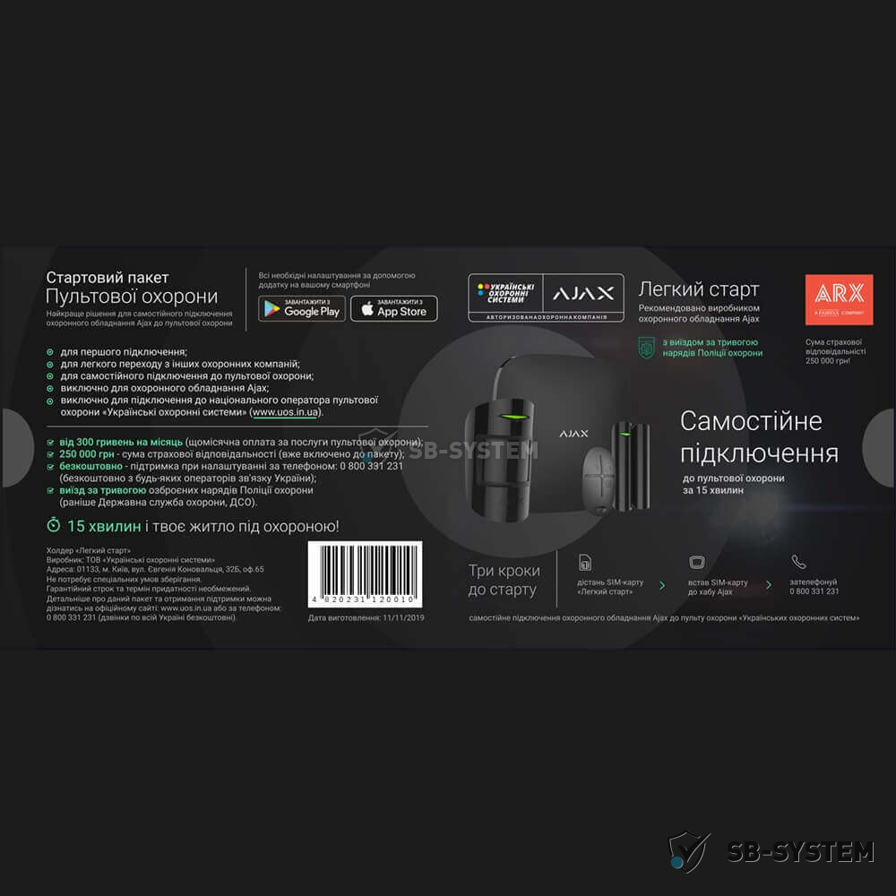 Опис товару стартовий пакет Холдер «Легкий Старт» для підключення Ajax до пульта охорони «Українських охоронних систем» з виїздом за тривогою нарядів Поліції охорони
