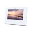 Кольоровий 2-х канальний відеодомофон з сенсорними кнопками та TFT LCD екраном 7". Розмова по гучномовному зв'язку (hands-free). Стандарт відеосигналу PAL, NTSC. Пластиковий корпус білого кольору. Живлення 100-240V. Розміри 180х180x28мм.