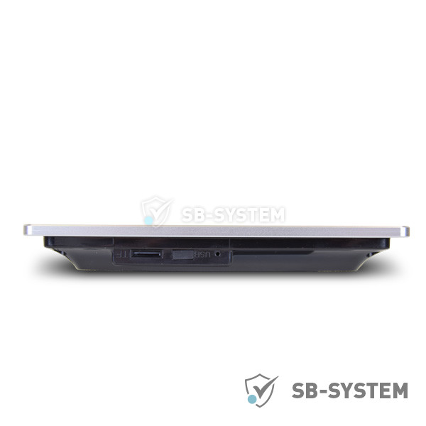 Кольоровий домофон з TFT екраном 7 дюймів і сенсорними кнопками керування, підключення 2 панелей виклику, 2 відеокамер, 2 датчиків тривоги і 1 додаткового монітора (телевізора). Розмова по гучному зв'язку, є інтерком на 3 відеодомофона. З'єднання з визивною панеллю 4-дротове. Слот microSD до 32 Гб, джерело живлення 100-240V, споживання 600mA, в режимі очікування 250mA. Корпус чорного кольору. Розміри 245x165x20мм.