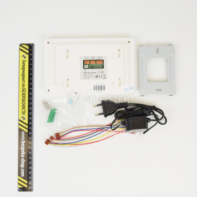 До комплекту постачання до відеодомофона LILU LE Ліс додається настінний кронштейн, монтажні аксесуари, комплект з'єднувальних дротів, блок живлення і інструкція з експлуатації.