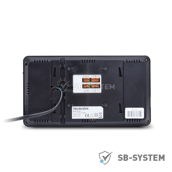 Кольоровий монітор з TFT сенсорним екраном 7 дюймів, підключення 2 панелей виклику і 2 відеокамер. Розмова по гучному зв'язку, є інтерком на 3 відеодомофони. З'єднання з панеллю виклику 4 дротове.Слот microSD до 32 Гб, живлення 100-240V, 50-60 Hz, споживання 9W, в режимі очікування 2,6W. Корпус чорного кольору. Розміри 210x116x25мм.