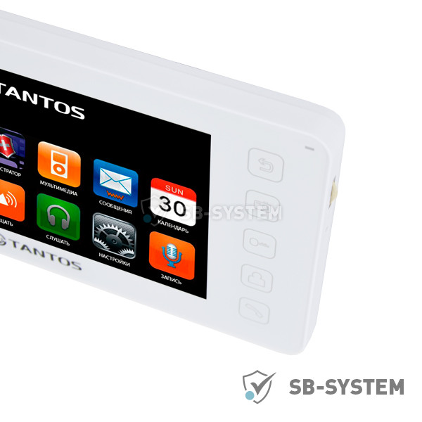 • домофон Tantos Prime 7" (White) обладнано кольоровим TFT-екраном з діагоналлю 7 дюймів, високою чіткістю і гарною передачею кольору;