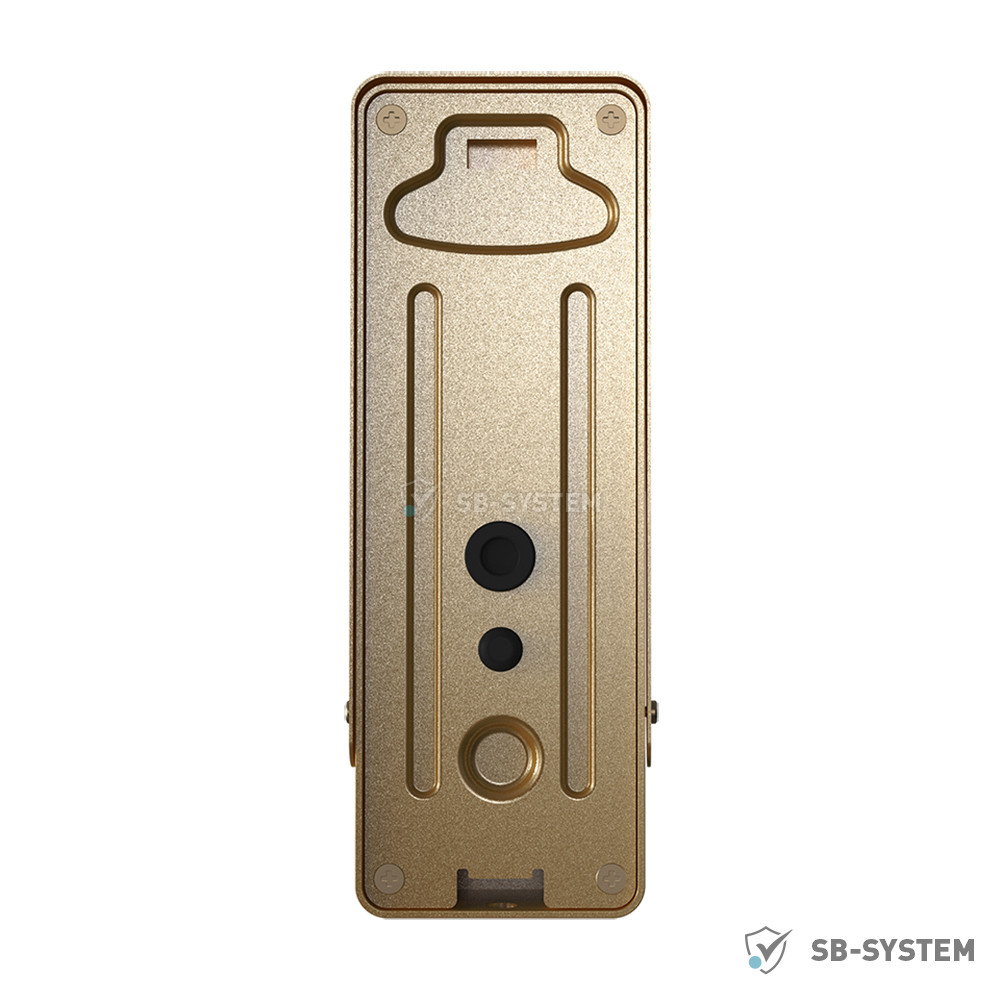 Вологозахисний корпус відеопанелі Slinex ML-20IP виконано з металу з пластиковими вставками. Колір корпусу чорний з золотом.