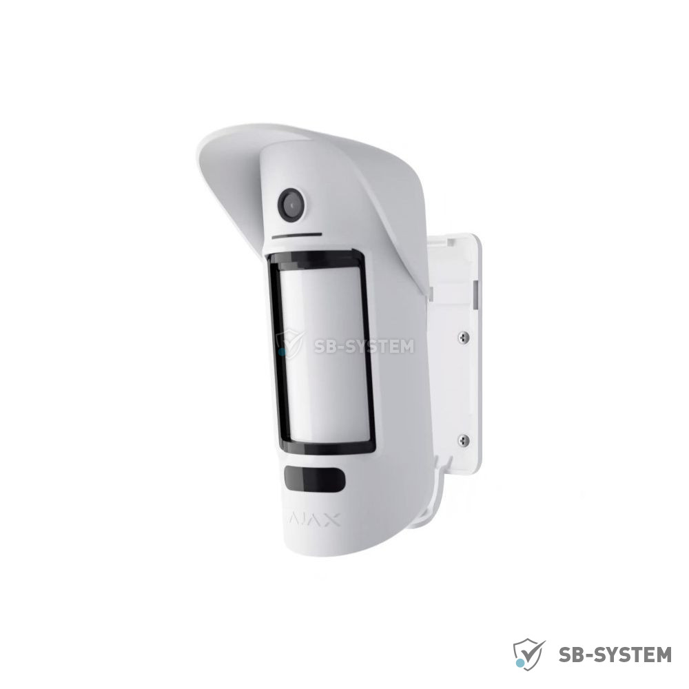 Вуличний датчик руху з фотокамерою по тривозі, запиту та сценарію. Працює з Ajax Hub 2/Ajax Hub 2 Plus/Hub Hybrid.. Дальність детектування - 3-15 м, кут огляду 90 °. Не реагує на тварин зростом до 80 см. Фото за тривозом, за запитом та за сценарієм. Дальність зв'язку із централлю до 1700 м (на відкритому просторі). Колір корпусу – білий.