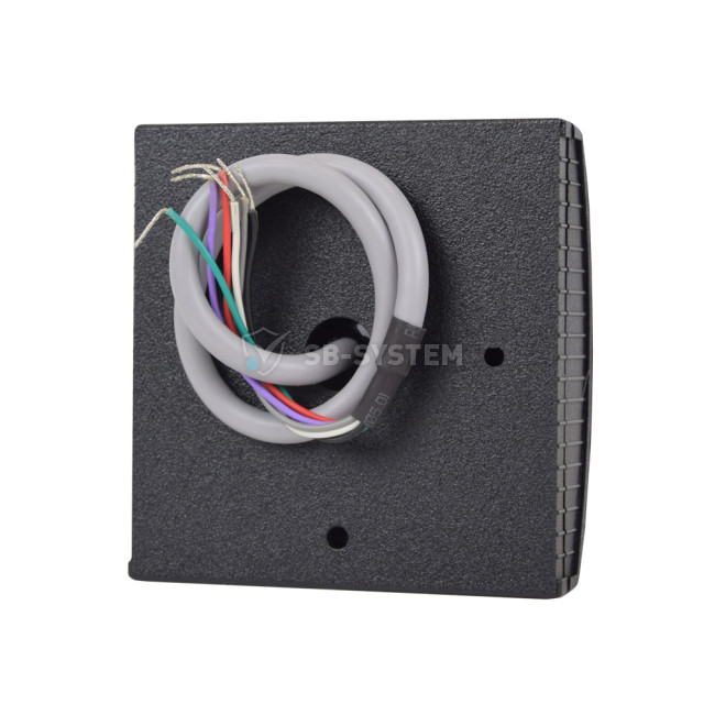 Зчитувач карт і брелоків стандарту Em-Marine 125кГц із вбудованою клавіатурою; Wiegand-26; Дальність зчитування 10см; Живлення 6-14В; Споживання 70мА; IP64; Температура -20°C до +65°C; Розміри 86х86х17мм. Колір: чорний